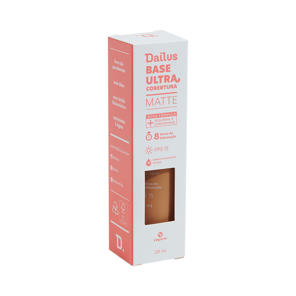 Base líquida de alta cobertura com acabamento matte e textura cremosa. Fórmula vegana, sem parabenos e resistente à água, oferece hidratação por até 8 horas e FPS 15 para um acabamento uniforme e natural em peles mistas e oleosas.
