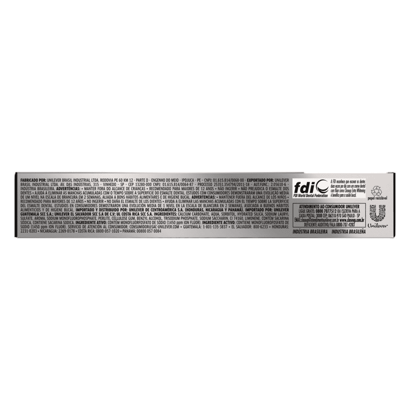 Partículas branqueadoras e design que ressalta frescor e clareamento eficiente.