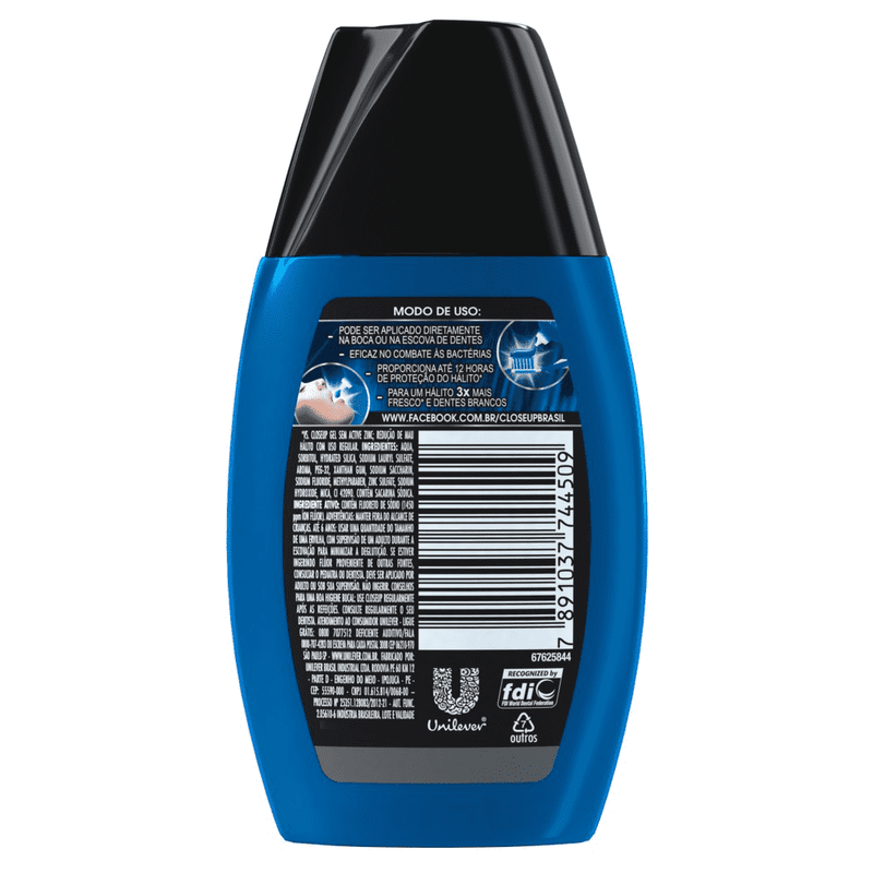 A marca Close Up é reconhecida por sua dedicação à qualidade e segurança em cuidados bucais, utilizando processos rigorosos para garantir a eficácia e a proteção dos consumidores. Seus produtos são desenvolvidos com tecnologia avançada e ingredientes selecionados para oferecer resultados confiáveis. A Close Up mantém um compromisso constante com a inovação e a satisfação dos usuários. Ao escolher esta marca, você conta com a confiança de uma líder global em saúde bucal.