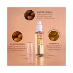 Ingredientes naturais como óleo de argan, pracaxi e vitamina E que nutrem, protegem e restauram os fios.