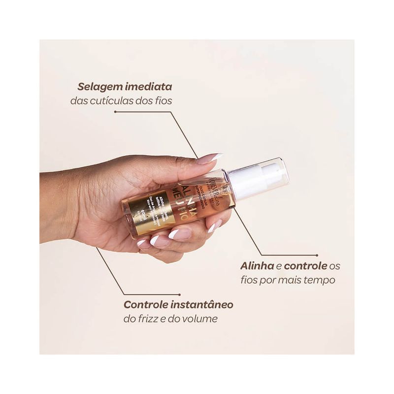 Este óleo capilar oferece nutrição intensa, controle do frizz e proteção térmica. Sua fórmula com ativos naturais promove fios alinhados, macios e com brilho duradouro, sem pesar.