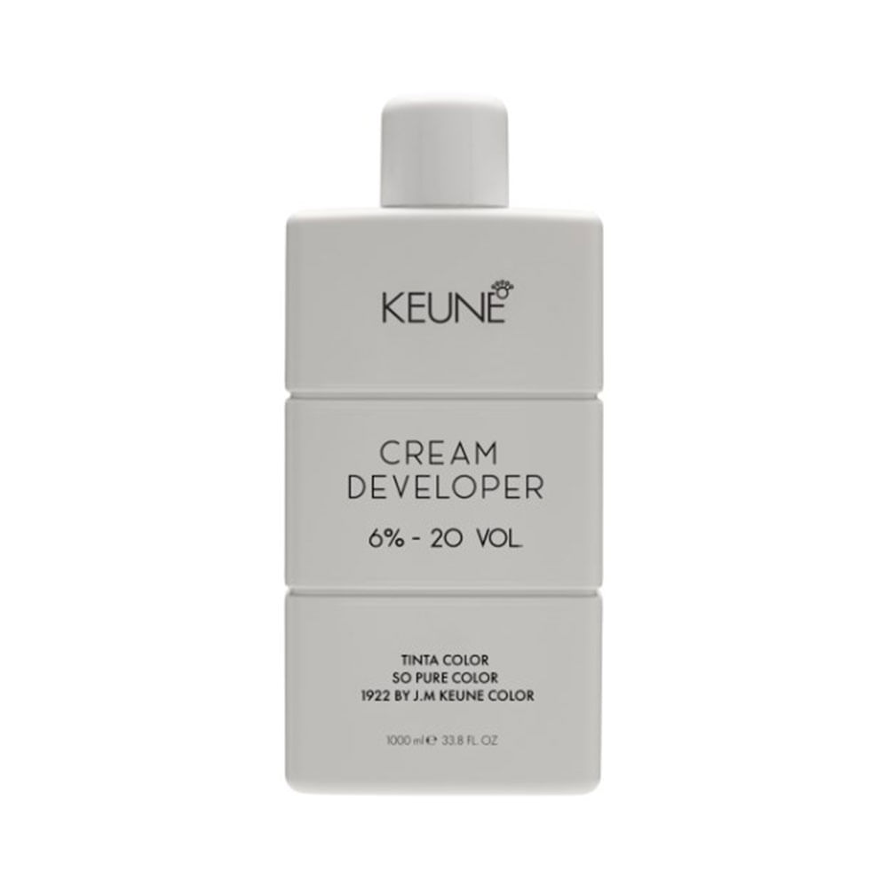 Oxigenada Keune Developer 20 Volumes com fórmula cremosa que garante mistura homogênea e aplicação prática, promovendo clareamento controlado e brilho. Indicada para uso profissional, compatível com tintas Keune e acondicionada em frasco de 1000ml com tampa rosqueável para maior segurança no manuseio.