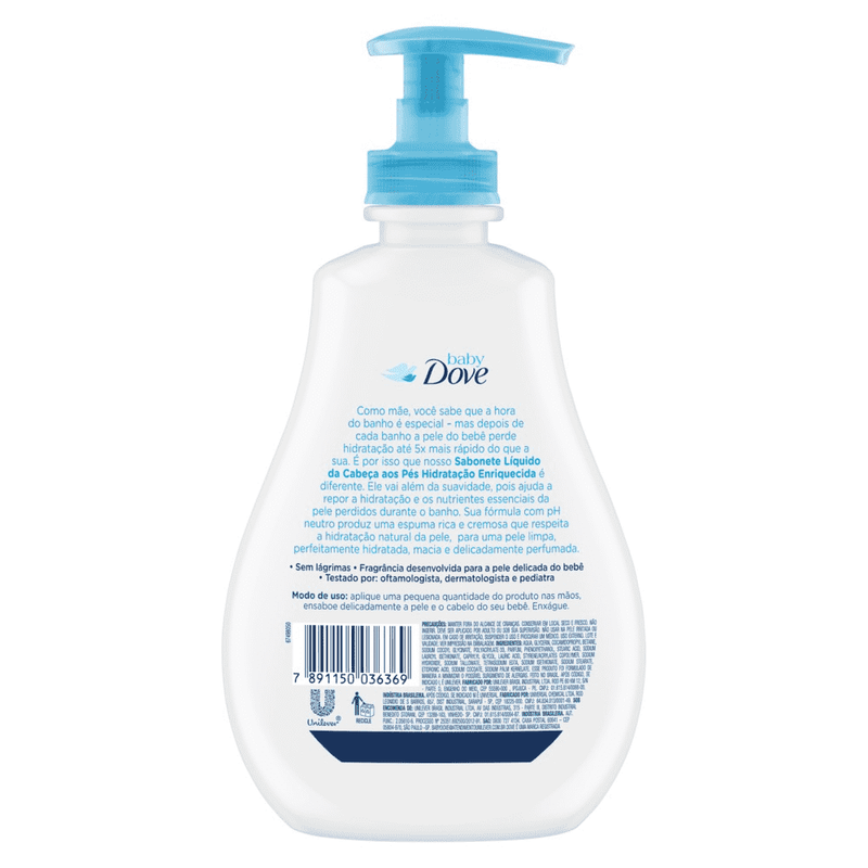 O Sabonete Líquido Dove Baby Hidratação Enriquecida oferece uma limpeza suave e eficaz para a pele delicada do bebê, promovendo hidratação profunda desde o primeiro uso. Sua fórmula hipoalergênica, com pH neutro, é especialmente desenvolvida para proteger e nutrir a pele sensível, evitando ressecamento. Enriquecido com nutrientes essenciais, ajuda a repor a hidratação perdida durante o banho, deixando a pele macia e perfumada. Ideal para uso diário, proporciona conforto e cuidado completo da cabeça aos pés, garantindo bem-estar para os pequenos.