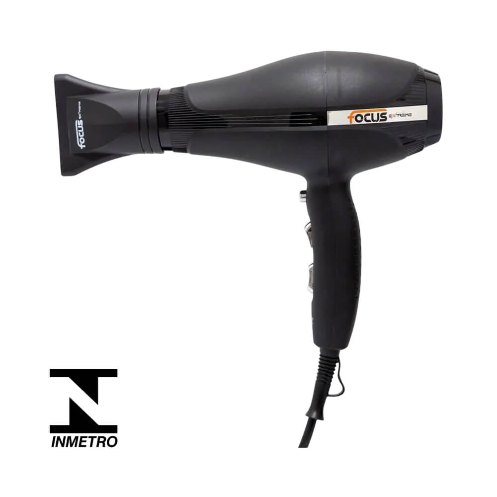 Secador profissional Lizz Focus Extreme com motor digital brushless de 2400W e tecnologia de íons hidratantes para secagem rápida, redução do frizz e acabamento com brilho. Design ergonômico e leve para uso confortável, ideal para quem busca performance e cuidado dos fios.